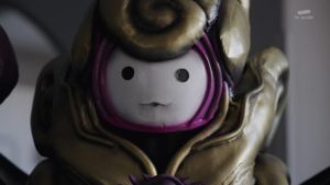正月で街がにぎわうなか、吠(冬野心央)の前に、謎の赤い戦士・オリガレッド(声:土屋神葉)が現れた! 折り紙で戦うメガトン級に強いオリガレッドは、ある理由から吠を探していたそうで、2人は戦うことに…!